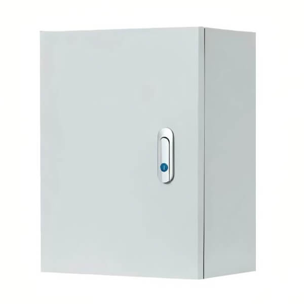 A space-saving, highly durable electrical enclosure manufactured from powder-coated steel. Equipped with an IP54 rating, it is specifically designed to protect critical electrical components in tight industrial environments where flexible installation is required.